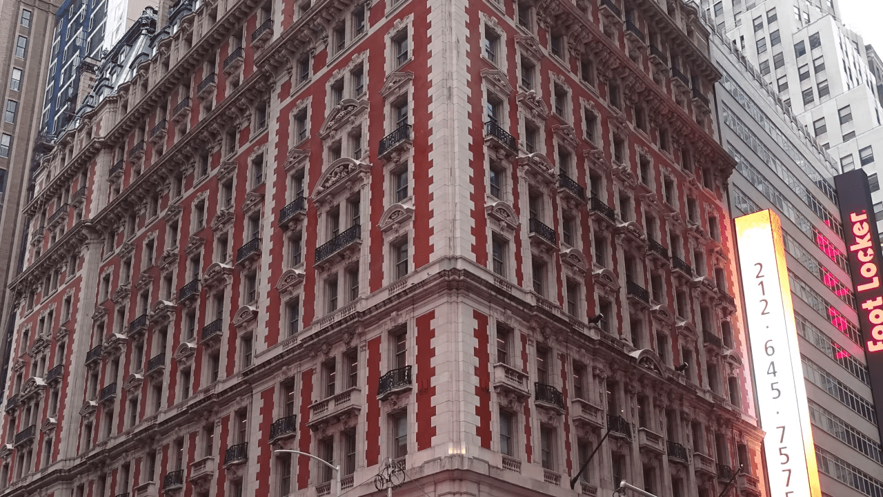 The hotel facades faced Broadway and 42nd Street. They were constructed of exquisite red brick with terracotta inserts. The hotel building, like many other buildings of the early 20th century, had a mansard roof. Also, the hotel had a small annex on 41st Street. Its architecture was built in the Romanesque Revival style.