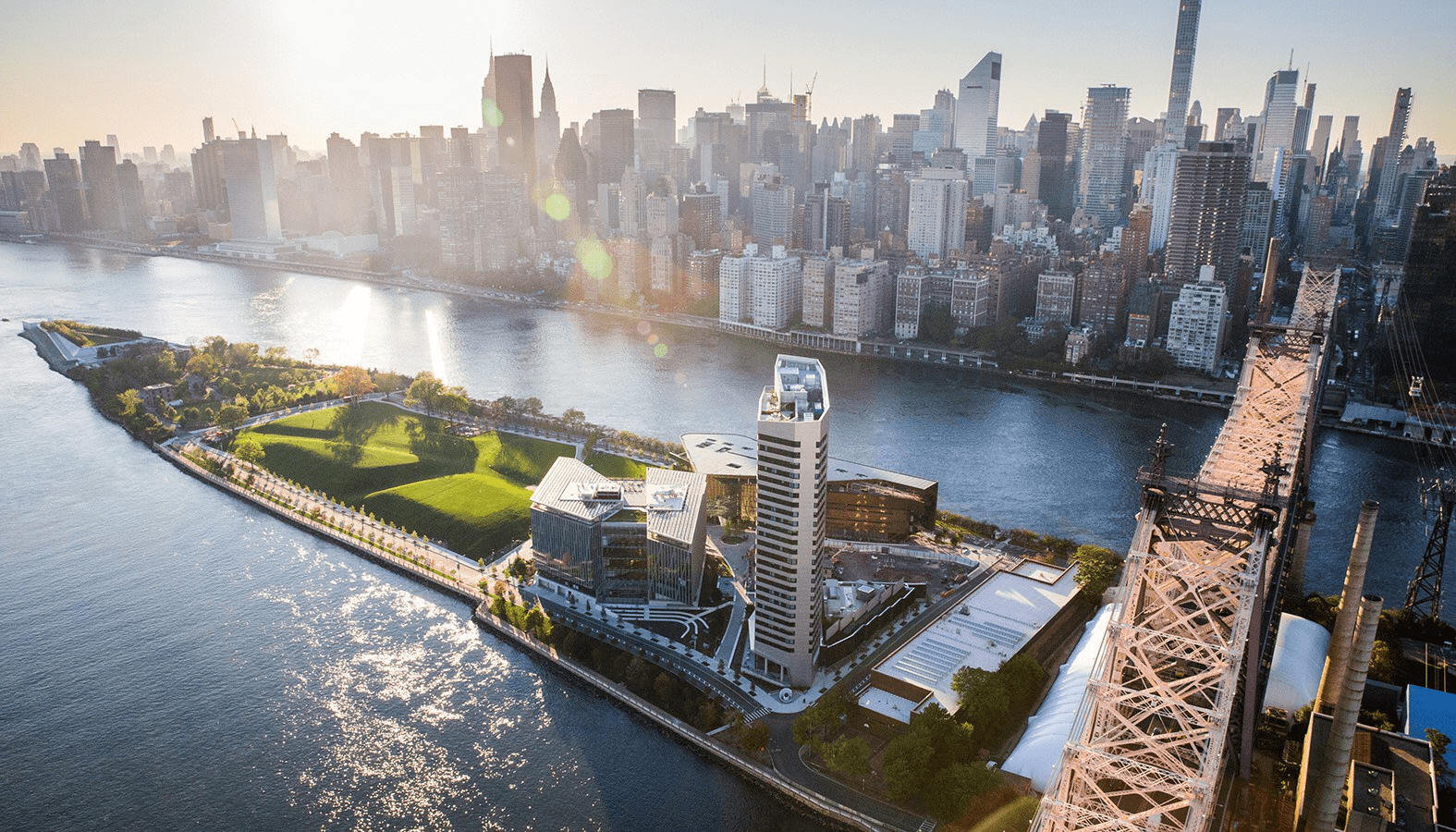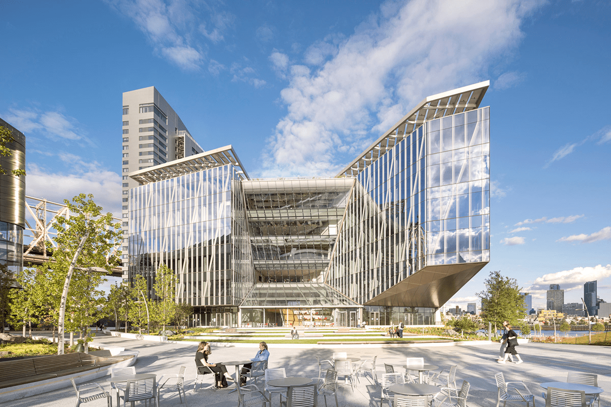 Открытый в 2017 году на острове Рузвельта, кампус Cornell Tech сочетает в себе не только технологические инновации, но и современную архитектуру, и, что особо важно — экологичность. Он был создан для сотрудничества и разработки и внедрения инноваций. В его состав входят ключевые здания, способствующие обучению и исследованиям.