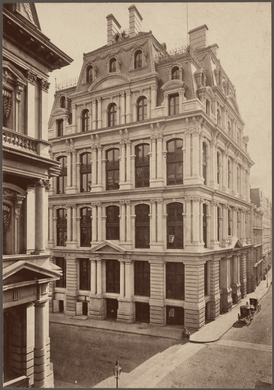 Строительство здания “Справедливая жизнь” было завершено в 1870 году. Подвальные этажи “Справедливой жизни”, а также первый этаж арендовали американские банки. Полы в вестибюле и банковских помещениях были сделаны из мрамора.