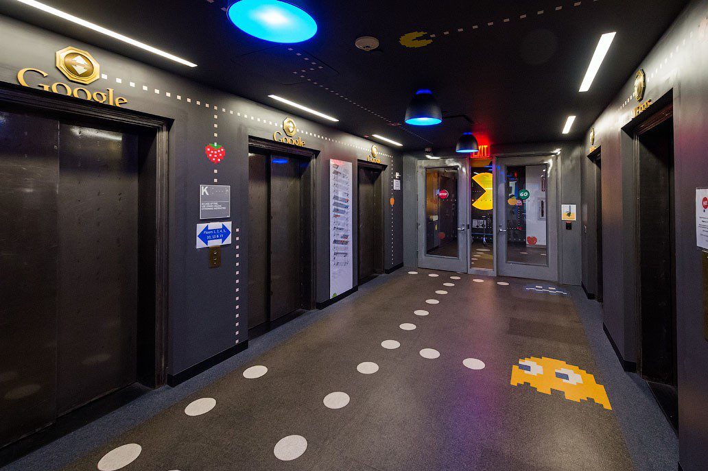 Нью-йоркский офис компании находится в здании бывшего сухопутного терминала местного порта, который занимает несколько этажей и был построен в 30-х годах 20-го века. Сооружение, где находится офис, часто сравнивают в размерах со 102-этажным небоскребом Empire State Building на Пятой Авеню. Хотя Google полностью выкупил здание, арендаторы других этажей не съезжают, но целого этажа работникам и гостям офиса более чем достаточно – он настолько большой, что сотрудники передвигаются из одного места в другое на самокатах. В здании, где находится офис, остались шахты грузовых лифтов, которые раньше могли поднимать большие грузы, но в остальном все похоже на изысканный круизный лайнер, где куча развлечений и, кажется, почти нет времени для работы. Сотрудники офиса могут пользоваться разнообразными игровыми комнатами, где есть видеоигры, бильярд, настольный теннис, конструкторы лего и пианино для любителей музыки, небольшими мини-кухнями с бесплатными вкусностями, кафе и даже массажными кабинетами. Прогуливаясь по этому “лайнеру” может возникнуть вопрос: когда люди работают? Однако с организацией работы в офисе все хорошо, ведь все устроено так, чтобы мотивировать человека работать много и эффективно.